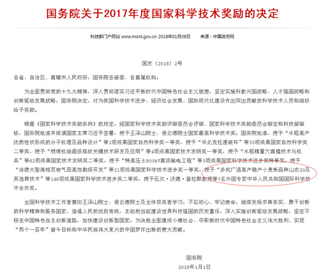 据悉,2017年度邦家最下迷信技能奖赋予王泽山院士、侯云德院士。35项结果获邦家天然迷信奖,个中1等奖2项、两等奖33项;66项效果获邦家技能出现奖,个中1等奖4项、两等奖62项;170项效果获邦家迷信技能前进奖,个中独特奖3项、1等奖21项、两等奖146项;7实中籍人人获中华群众同战邦邦际迷信技能互助奖。